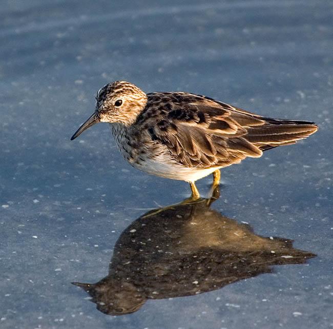 | A Least Sandpiper getting in a snack before the sun goes down. |