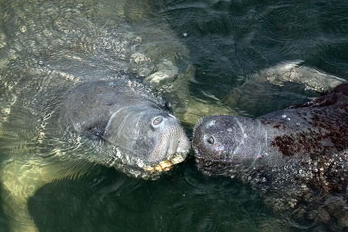 | Two of the 5 (or 6) Manatees that we saw frolicking close to the pier at sunrise. |