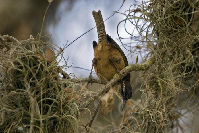 | Male Carolina wrens are known to sing up to 40 different songs. Females do not have as many but also sing at any time during the day and often you can hear duets |