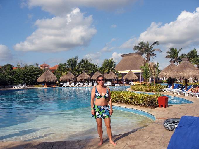 Hali getting ready for a morning dip at out favorite corner of the pool. The pool was really large!