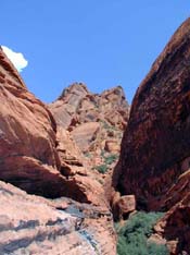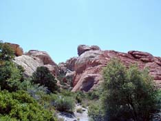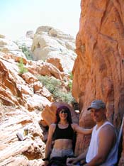 | We tried to follow the trail descriptions in the guidebook, but we did some wandering before we finally found the place. Turn right 250 yards after the native american sign? Left at the pine tree? Is that the red wall? It's definitely not that way! Let's rest in the shade and look at the book again! |