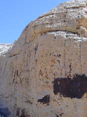 We started early and went straight to the upper portion of the corridor. The ratings seemed a little harder on the upper wall, but maybe we were just tired! There are some fun routes here, including my trip favorite "Dancin' with a god" (many cool moves). In early afternoon we ventured out in an attempt to hit the Magic Bus crag, but we were eventually turned away by a daunting approach (we later learned that an alternate route exists, but was not included in our guide book). We then came back to the Black Corridor to hit a couple of routes we had climbed the previous day. 5.9+ (PG) "Thermal breakdown"; M+,H,T,L* 5.9+ "Crude behavior"; T+,L,M,H* 5.9+ (PG) "Crude street blues"; M,H,T,L* 5.10a "Dancin' with a god"; M,H,T,L* -------------- 5.9 "Bonaire"; M+,T* 5.9+ "Bon ez"; T+,M* |