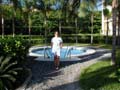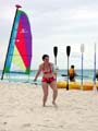 Mike, Christine, and Paul enjoying a lounge near the volleyball